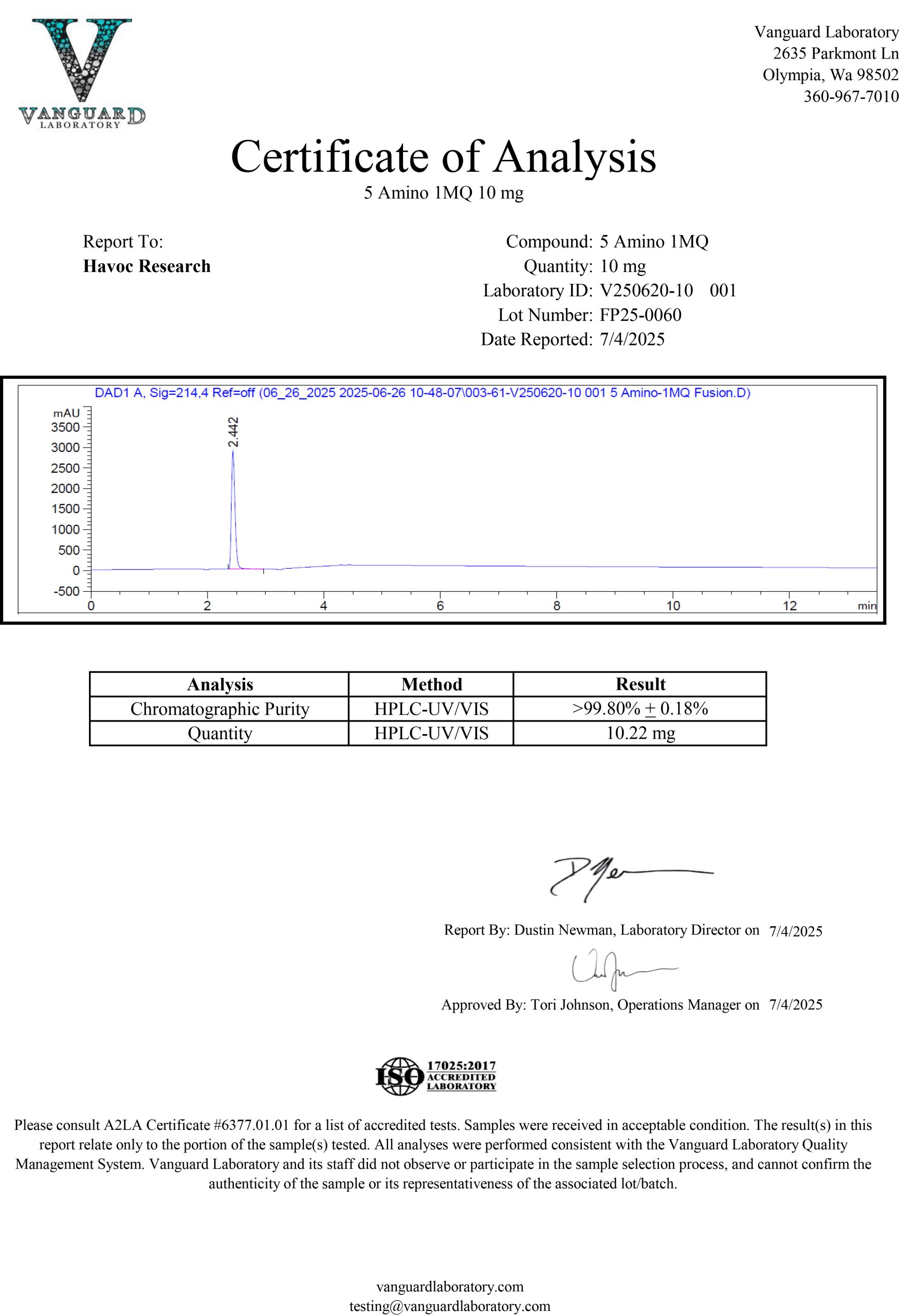 Every batch comes with a Certificate of Analysis (COA)