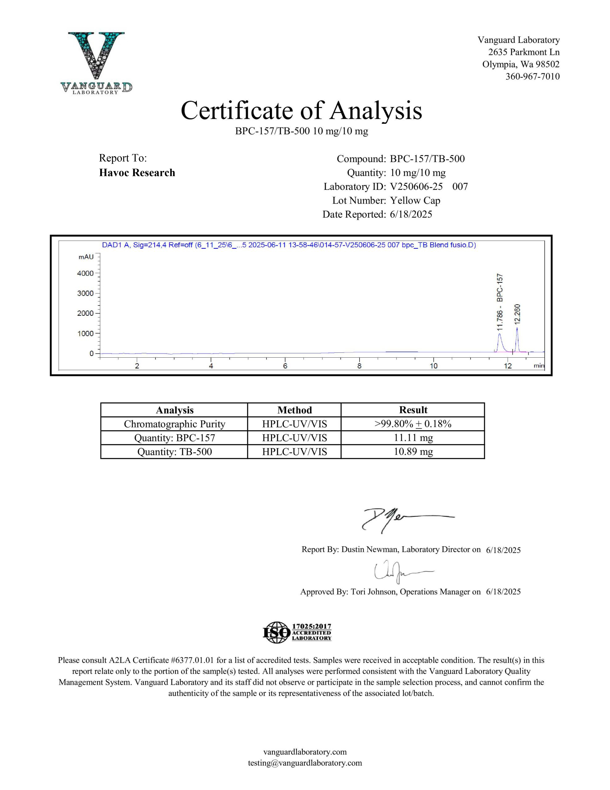 BPC-157/TB-500 Blend is now available. Havoc Research reviews every batch carefully because we ensure that each product is properly produced to include proper appearance and high purity.
