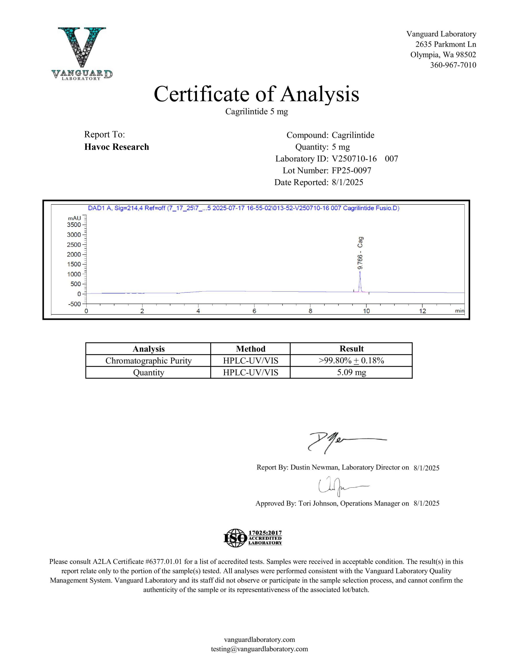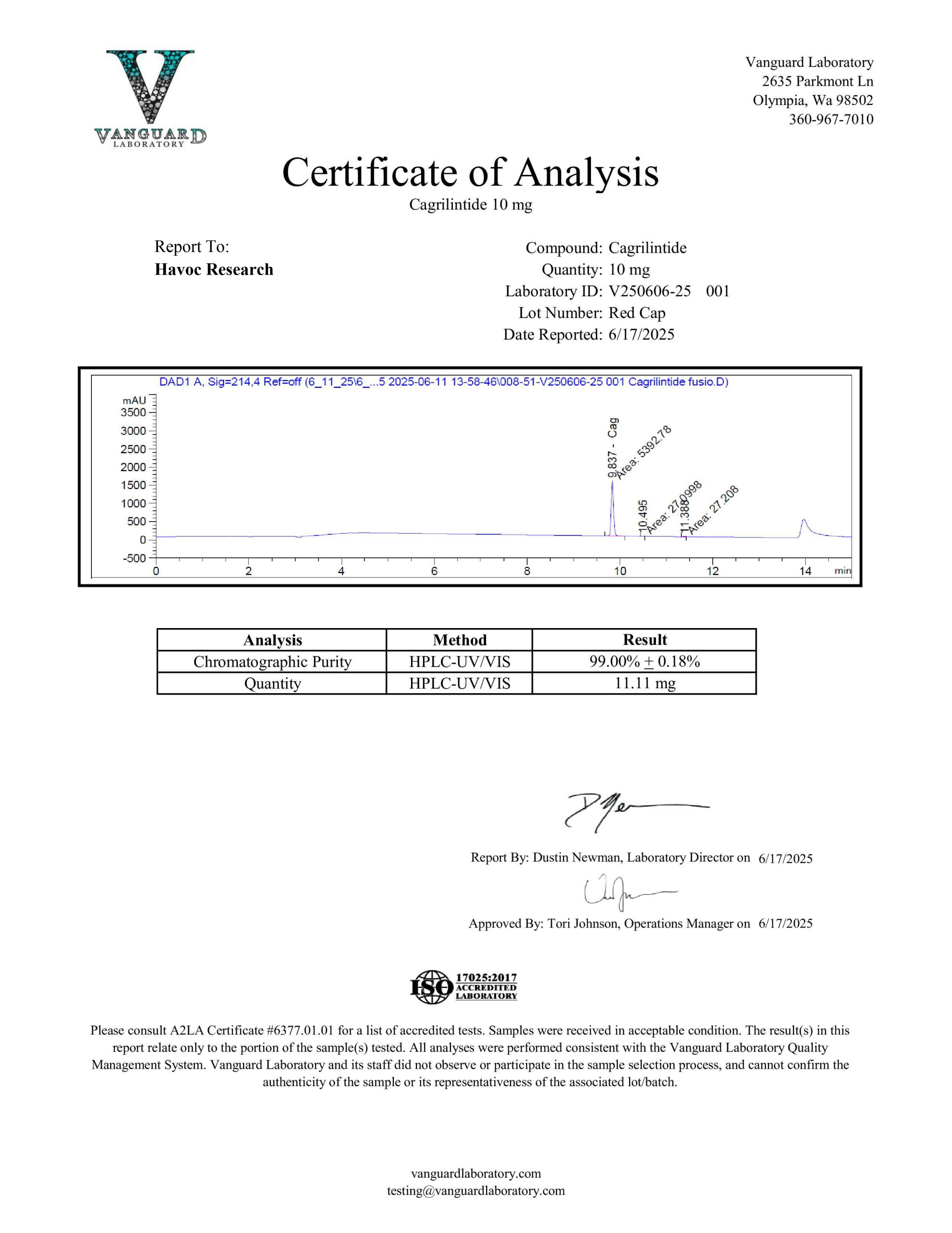 Cagrilintide is now available. Havoc Research reviews every batch carefully because we ensure that each product is properly produced to include proper appearance and high purity.