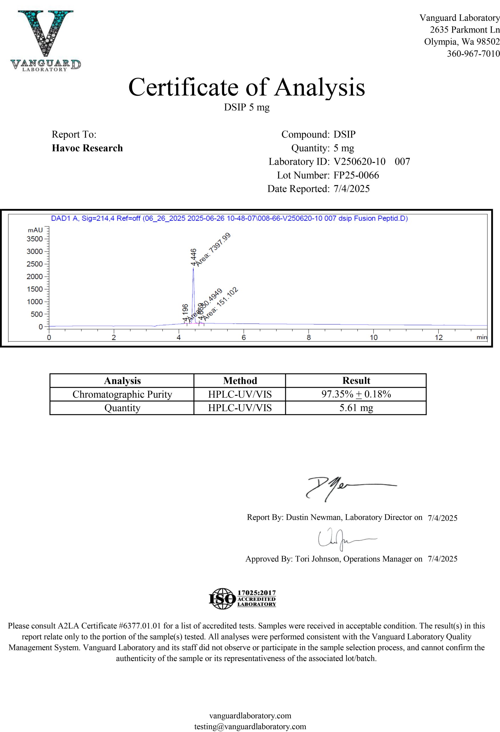 DSIP is now available. Havoc Research reviews every batch carefully because we ensure that each product is properly produced to include proper appearance and high purity.