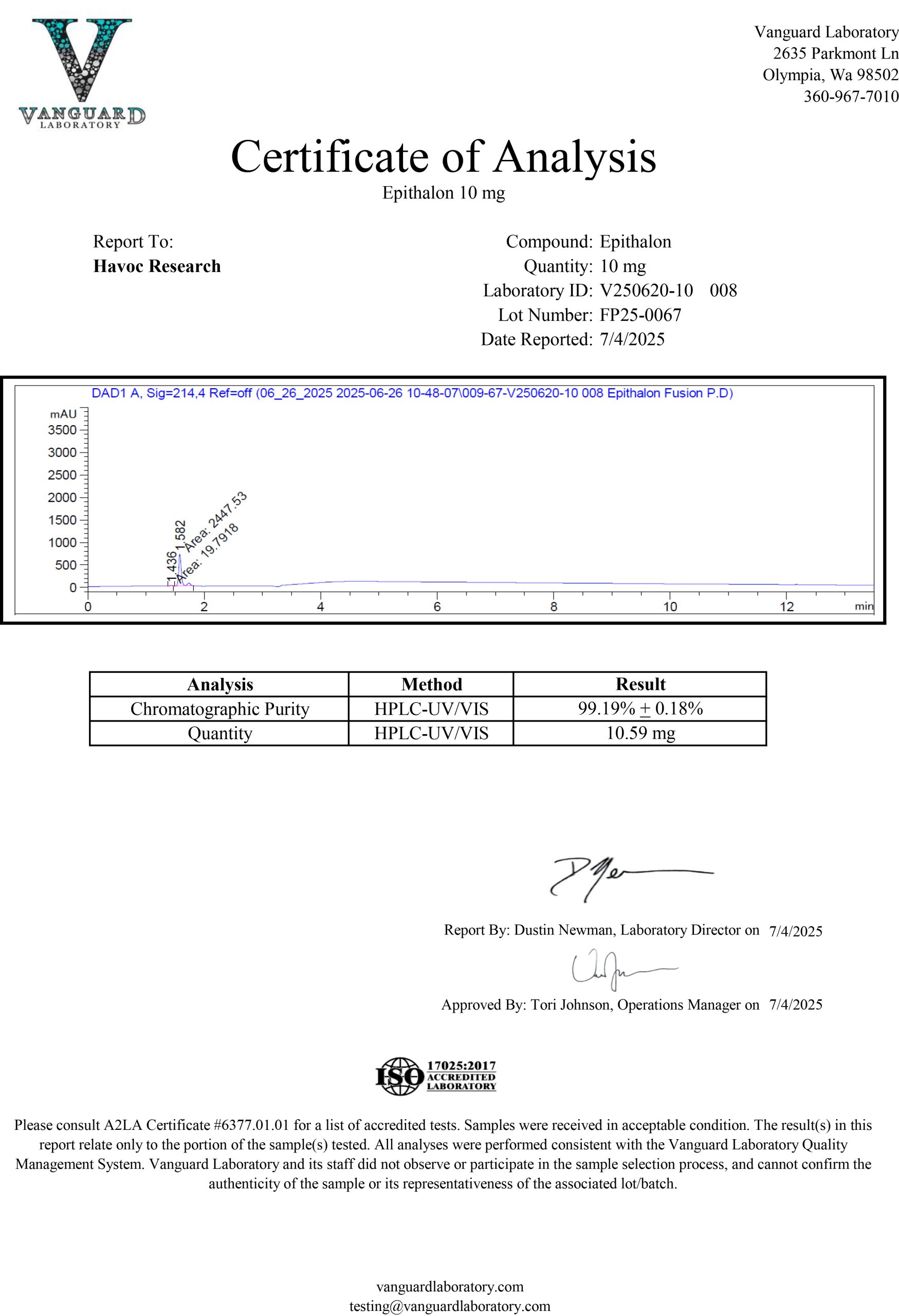 Epithalon is now available. Havoc Research reviews every batch carefully because we ensure that each product is properly produced to include proper appearance and high purity.