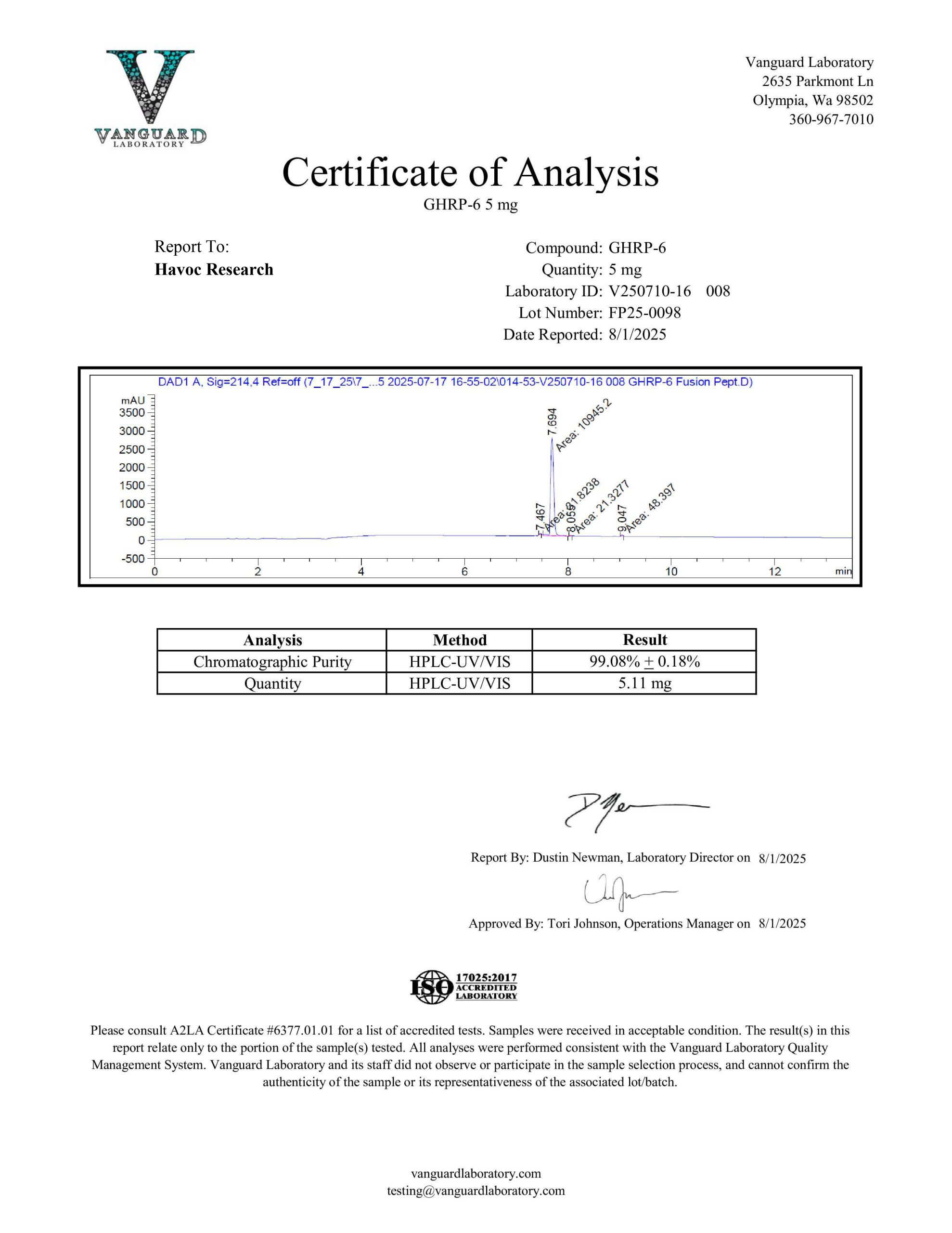 GHRP-6 is now available. Havoc Research reviews every batch carefully because we ensure that each product is properly produced to include proper appearance and high purity.