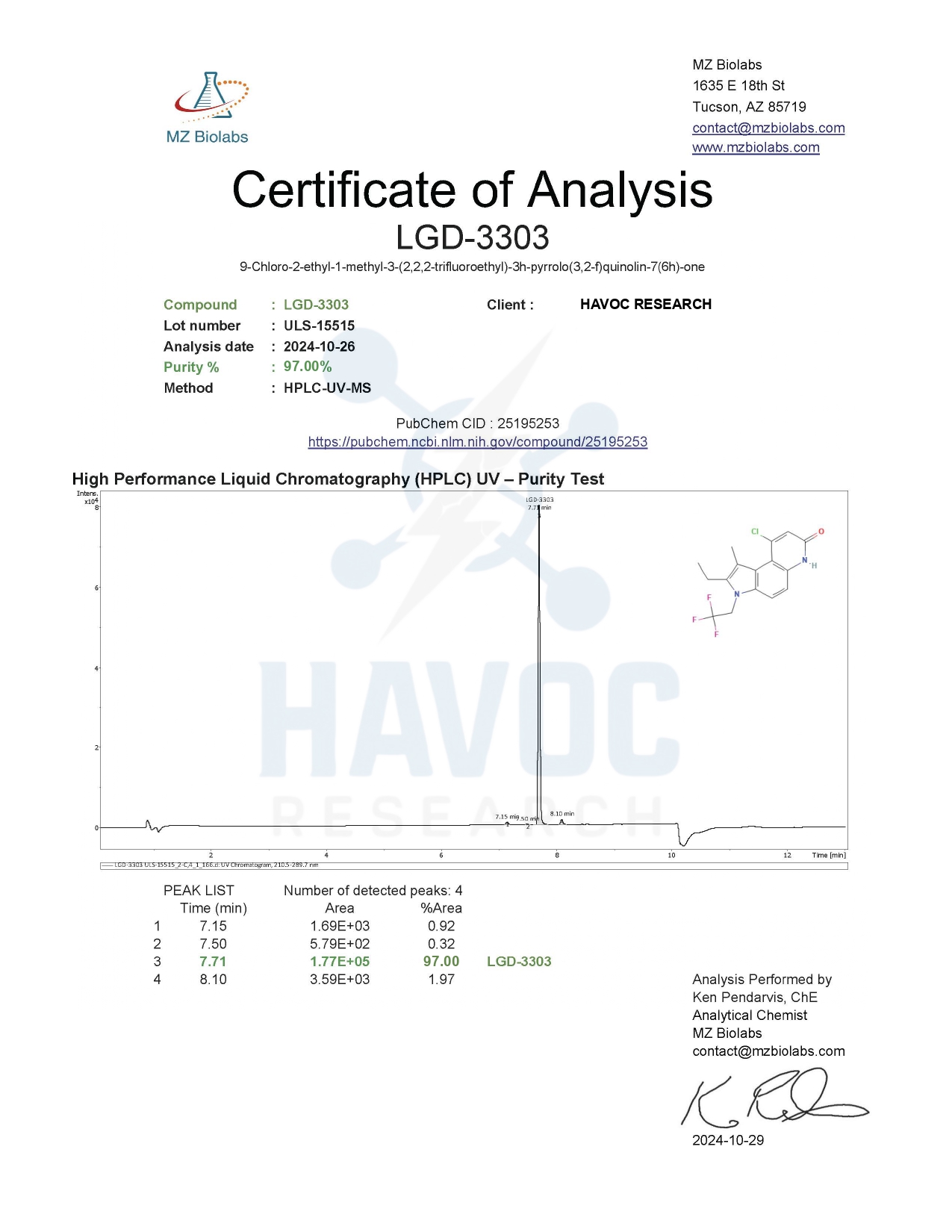 LGD-3303 capsules are now available. Havoc Research reviews every batch carefully because we ensure that each product is properly produced to include proper appearance and high purity.