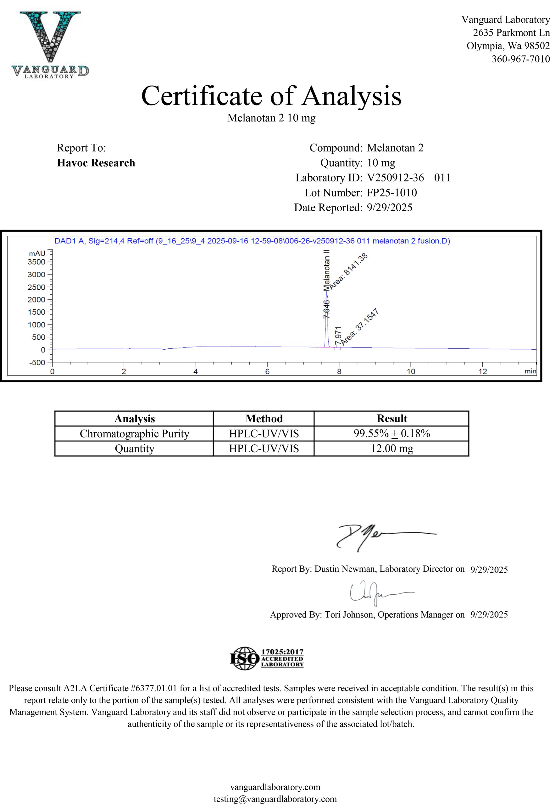Melanotan 2 is now available. Havoc Research reviews every batch carefully because we ensure that each product is properly produced to include proper appearance and high purity.