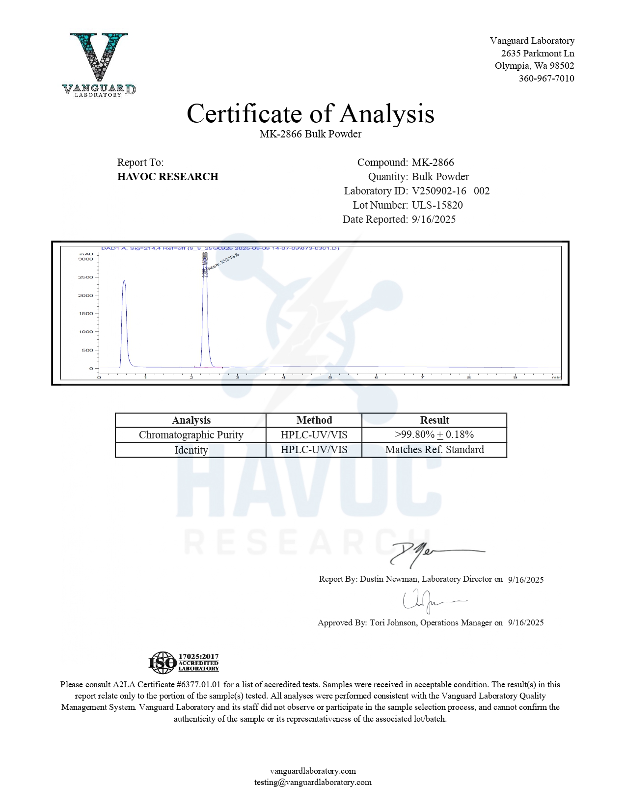 MK-2866 capsules are now available. Havoc Research reviews every batch carefully because we ensure that each product is properly produced to include proper appearance and high purity.