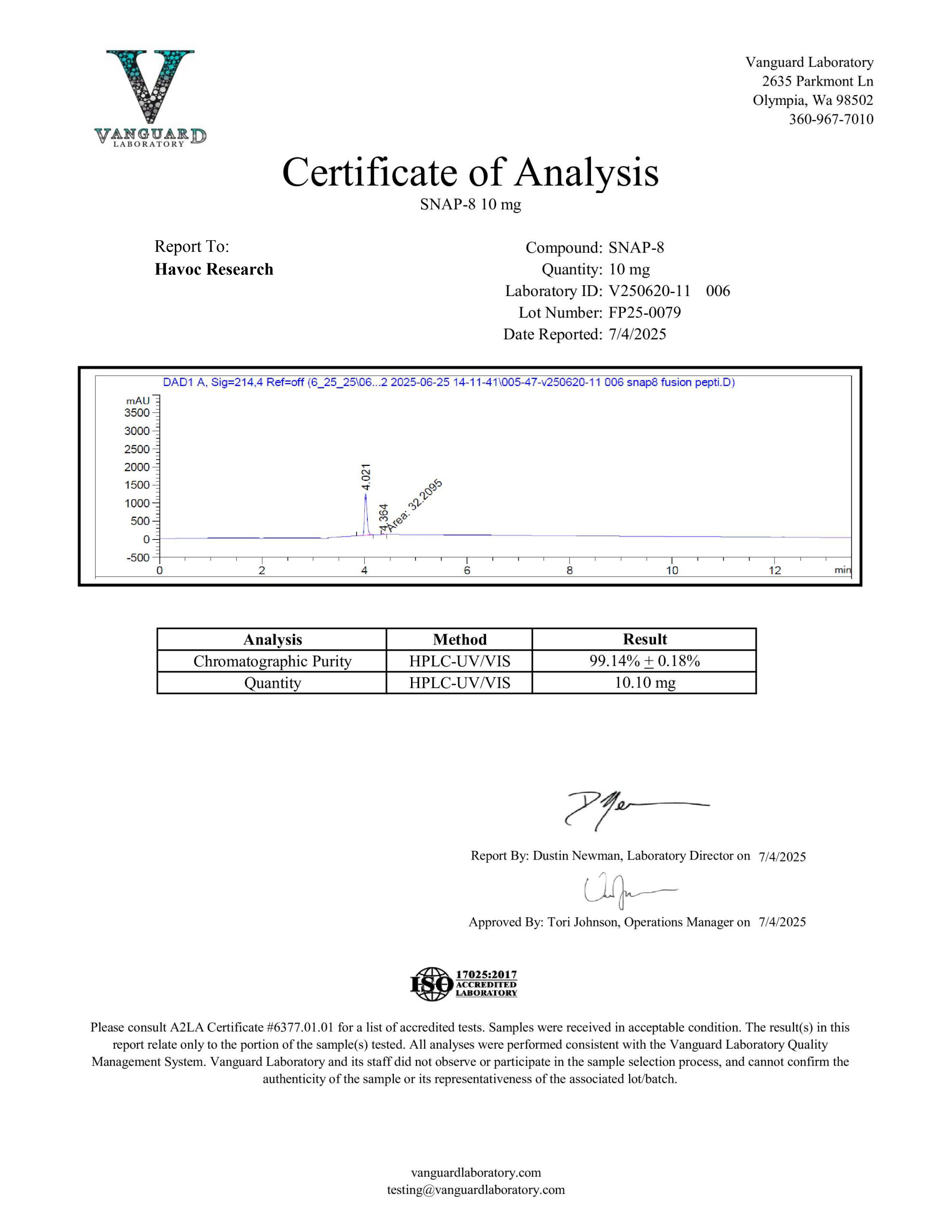 SNAP-8 is now available. Havoc Research reviews every batch carefully because we ensure that each product is properly produced to include proper appearance and high purity.