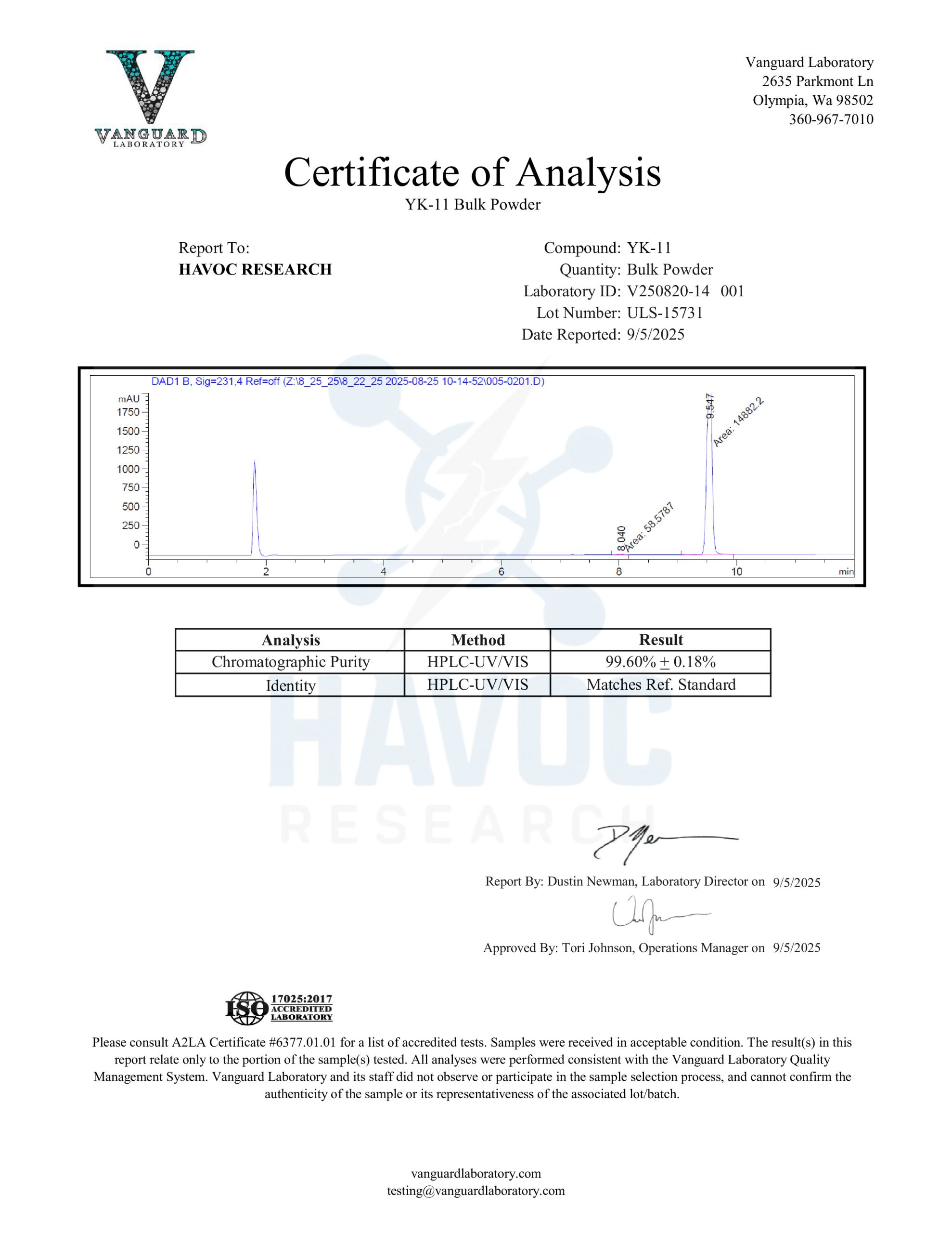YK-11 capsules are now available. Havoc Research reviews every batch carefully because we ensure that each product is properly produced to include proper appearance and high purity.